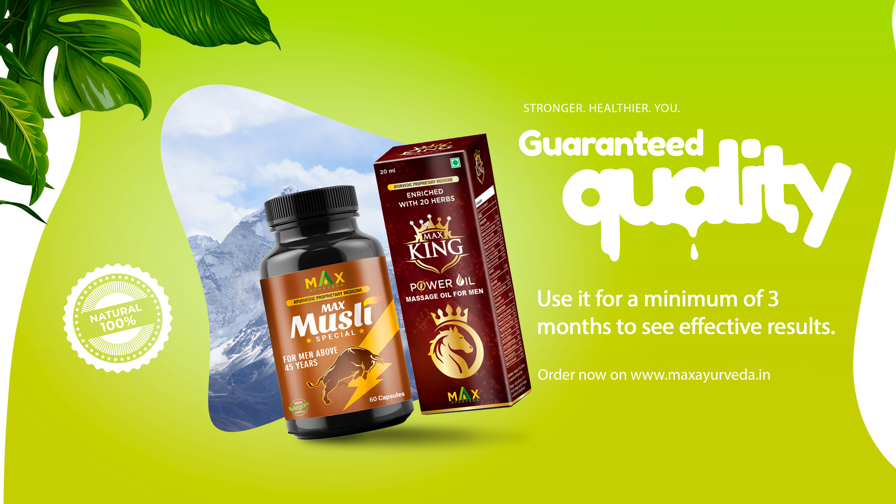Max Musli Special Combo, specially crafted for men aged 45 and above. Formulated with a blend of 13 potent herbal extracts, this combo, along with King Power Oil, is clinically tested and approved by the Ayush Department of the Government of India.